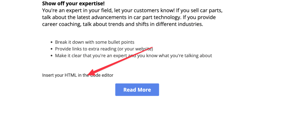 - In the email builder, drag and drop an "HTML" block to your desired location